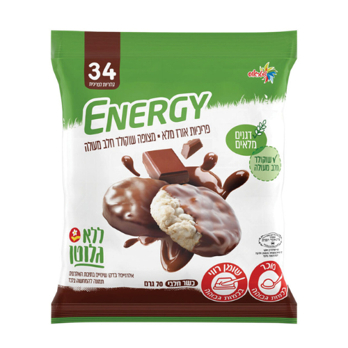 אנרג'י פריכיות מצופות שוקולד חלב 70 גרם עלית