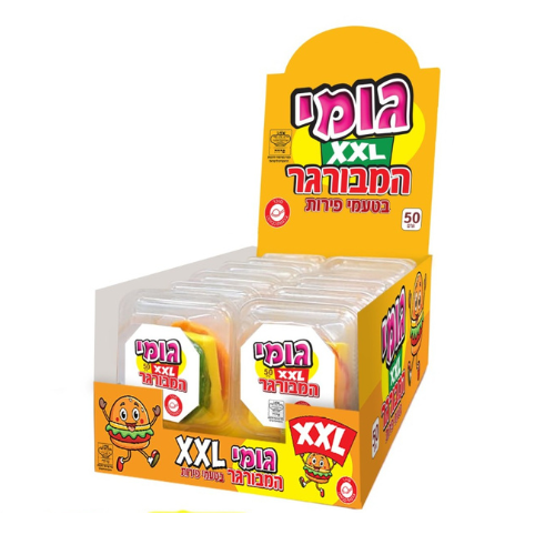 ראשי  > ממתקים  > לקריץ שטיחים מרשמלו וגומי  > גומי המבורגר XXL בטעמי פירות - 12 יחידות