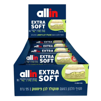 מארז 18 חטיפי חלבון אקסטרה סופט פיסטוק ושוקולד לבן 55 גרם אול אין