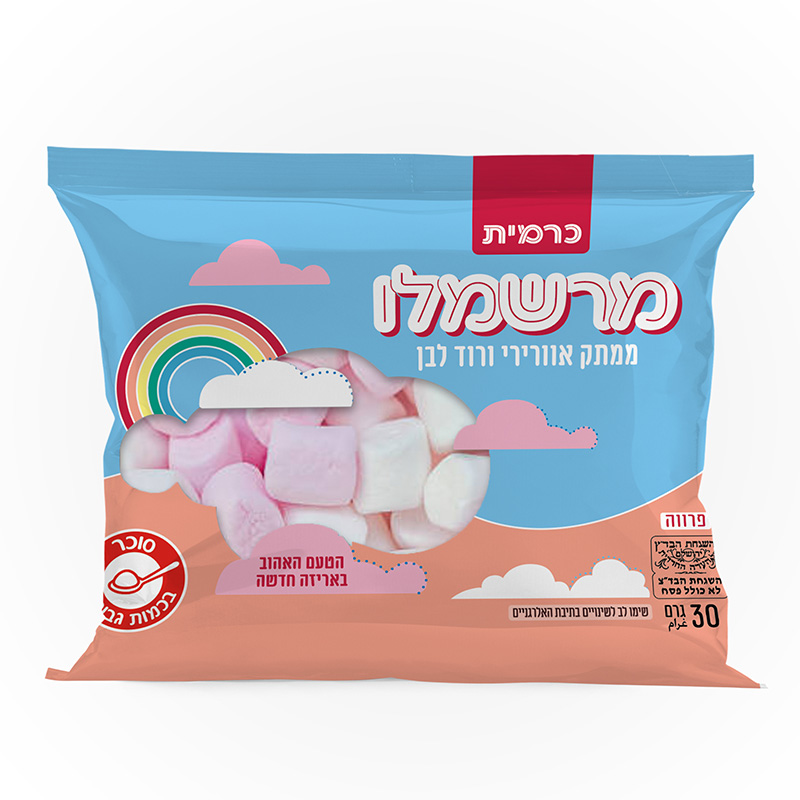 מרשמלו ורוד לבן בשקית 30 גרם - 48 אריזות כרמית