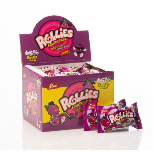 ראשי  > ממתקים  > לקריץ שטיחים מרשמלו וגומי  > סוכריות רוליס ענבים סגול 65% מיץ פרי - 24 יחידות