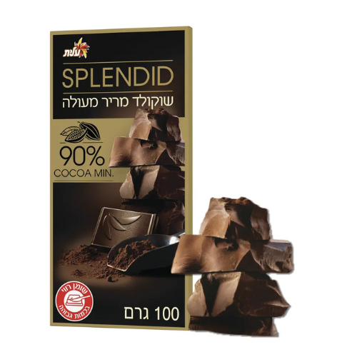 ספלנדיד שוקולד מריר 90% קקאו 100 גרם 12 יחידות עלית