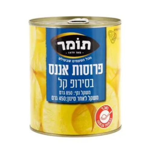 פרוסות אננס בסירופ קל 850 גרם תומר