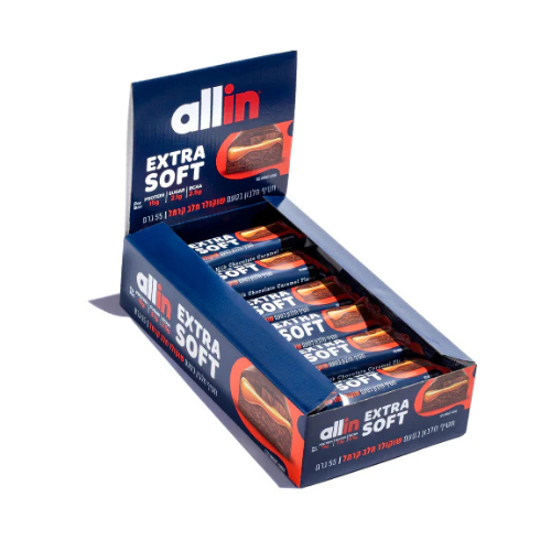 18 חטיפי חלבון אקסטרה סופט שוקולד חלב קרמל 55 גרם אול אין