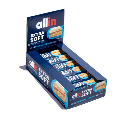 18 חטיפי חלבון אקסטרה סופט שוקולד לבן בוטנים קרמל 55 גרם אול אין